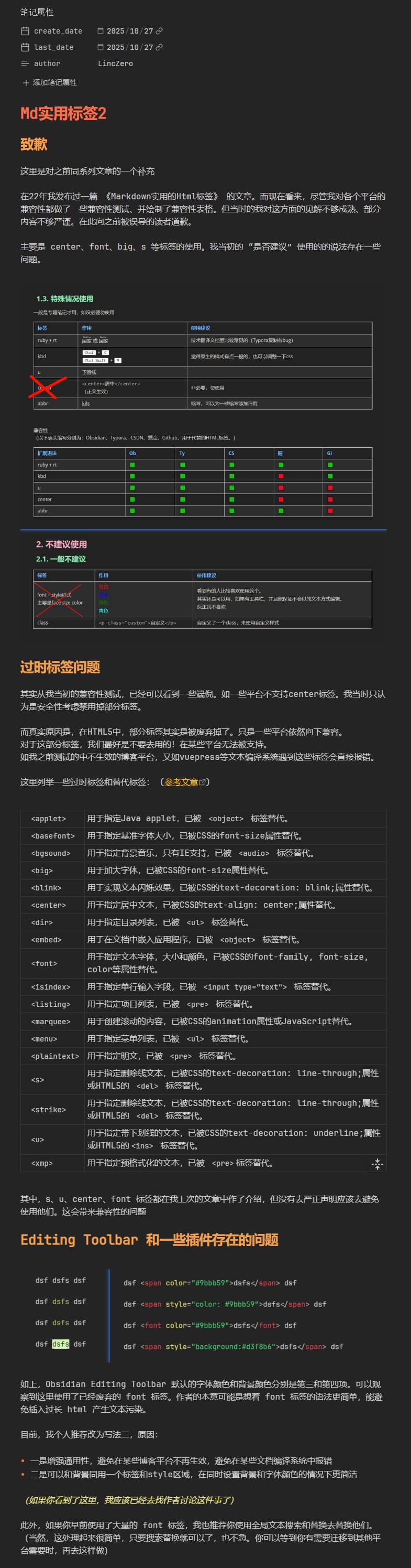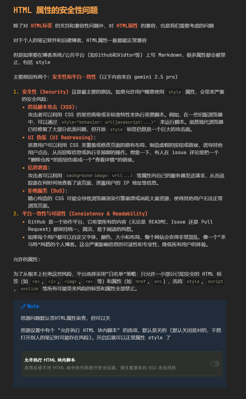 写作时优先使用Md自带的语法,少用HTML标签。几个原因: