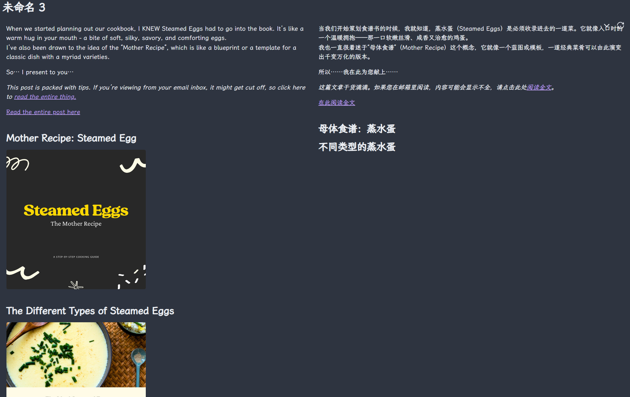 我倒是没想过把英文和中文分成两个md笔记,这种方案大概是当下最优解了,虽然笔记文件数量会变多,不过反而方便管理原文与译文。