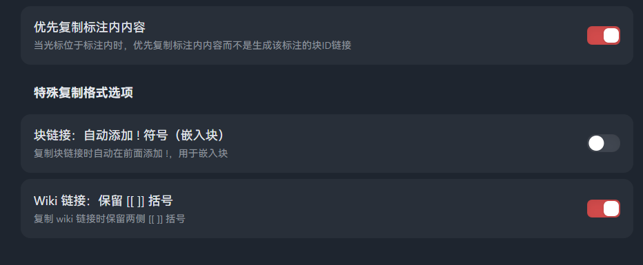 当“链接格式"选择“markdown链接”,同时“生成块链接的显示文本”选择“关闭”时,复制的链接粘贴出来是不显示文本的。