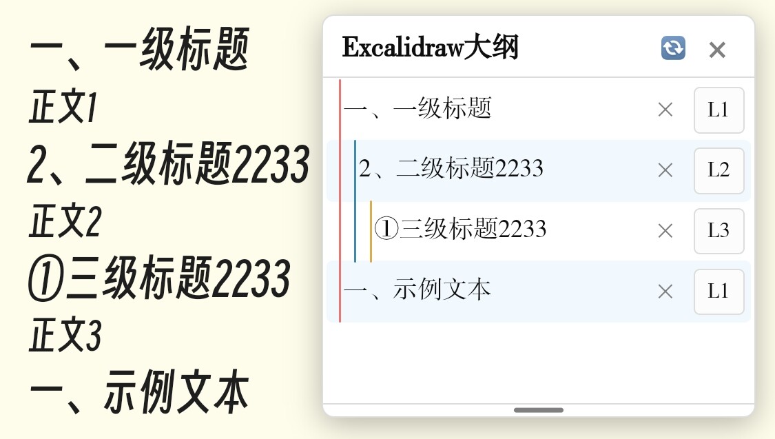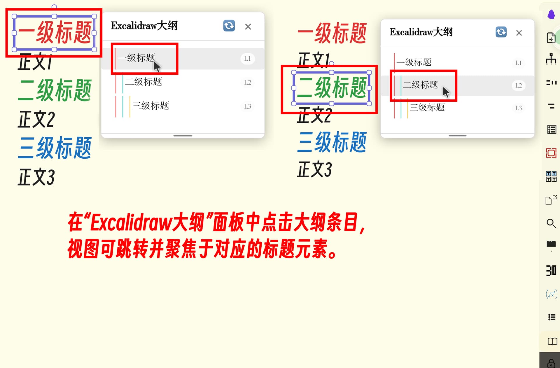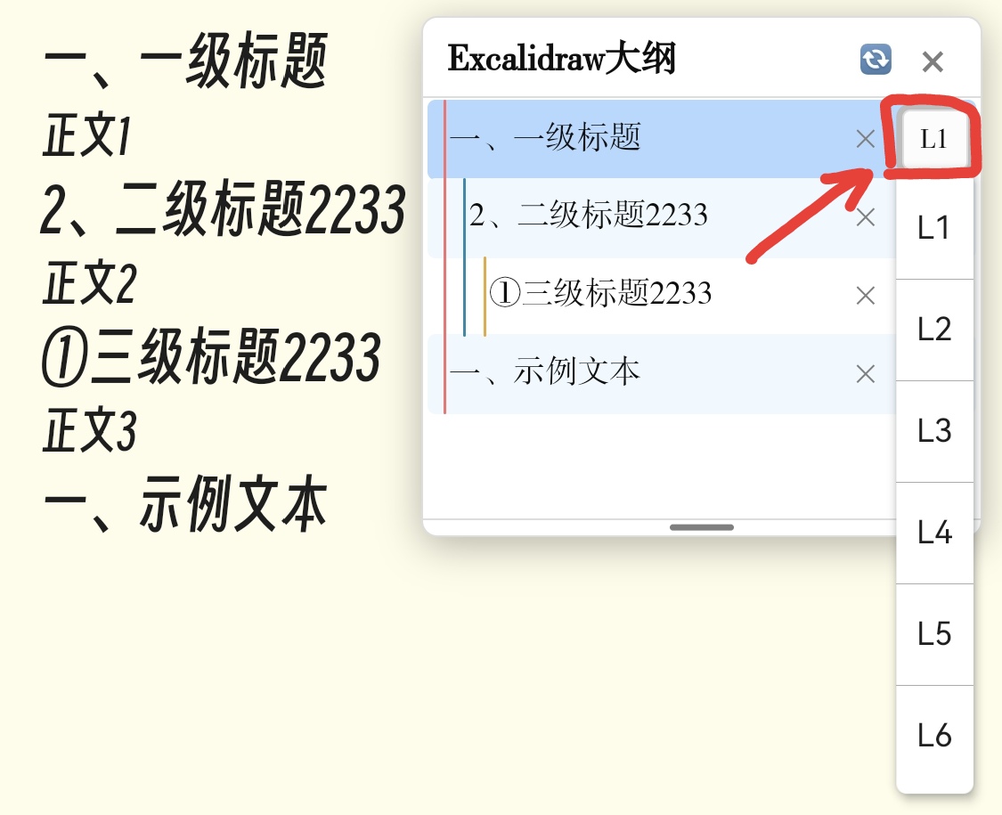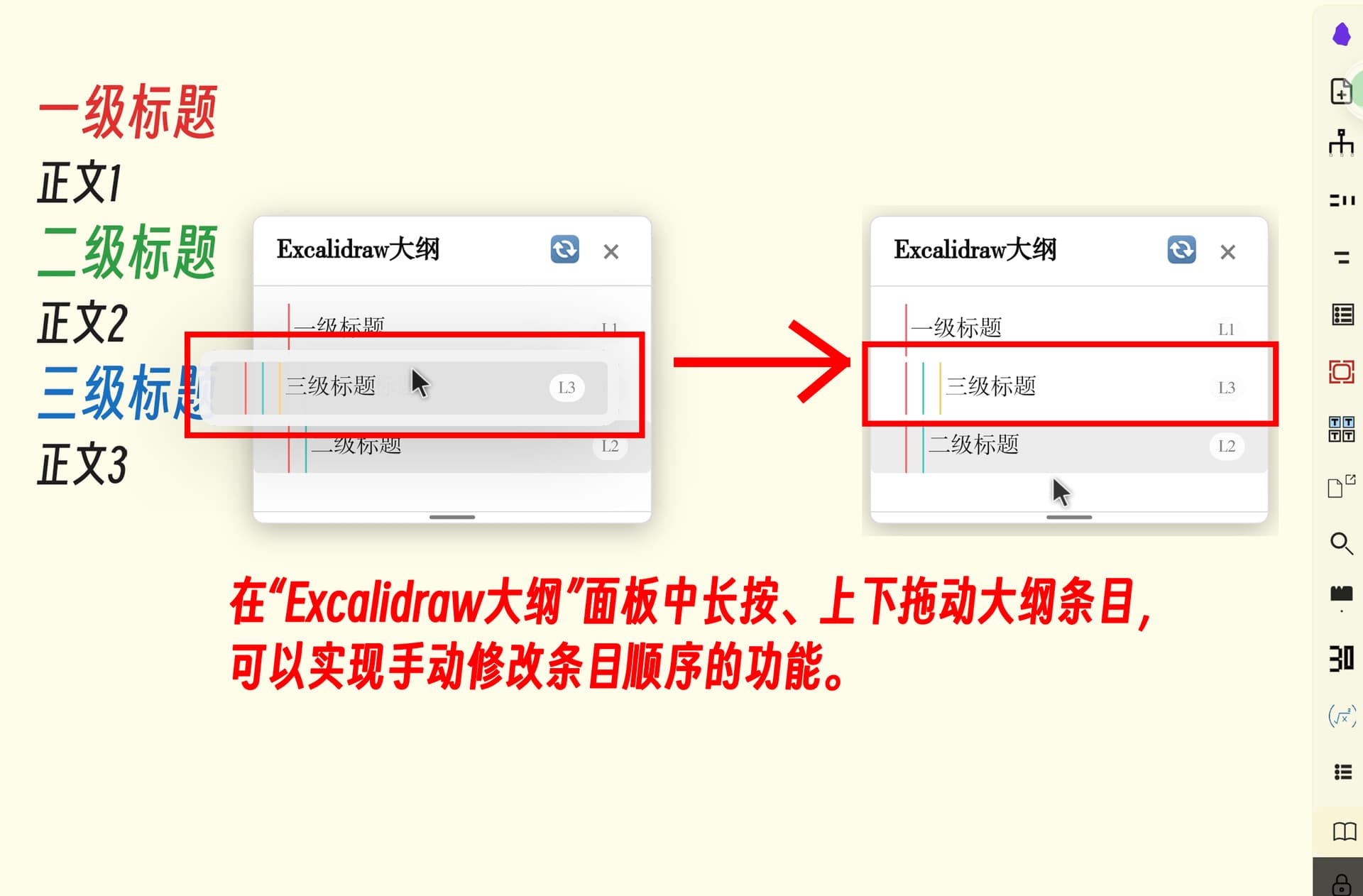 4、Excalidraw大纲面板 :手动调整大纲条目顺序