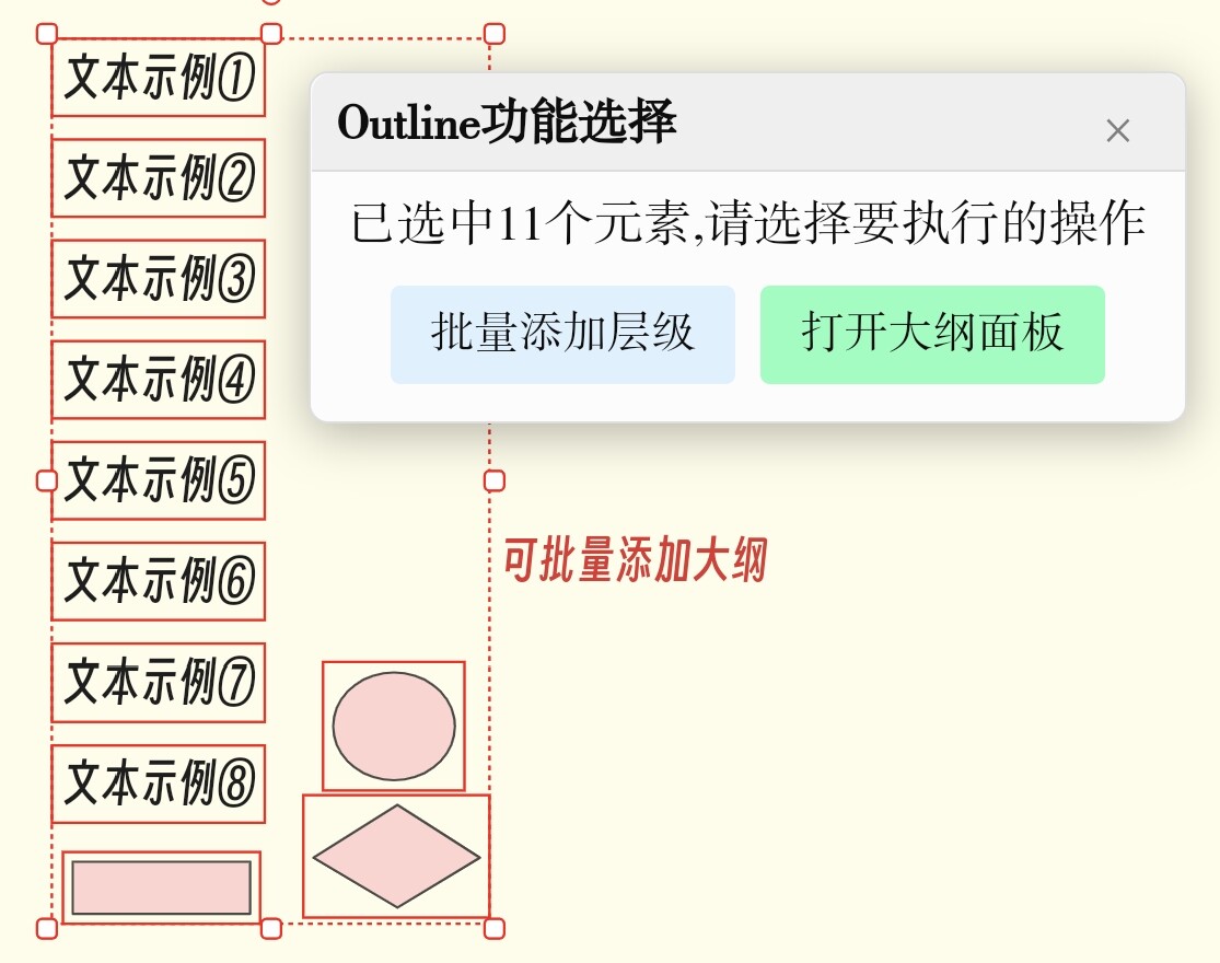 但是Excalidraw的大纲功能几乎等于没有,于是写了一个脚本实现大纲功能。