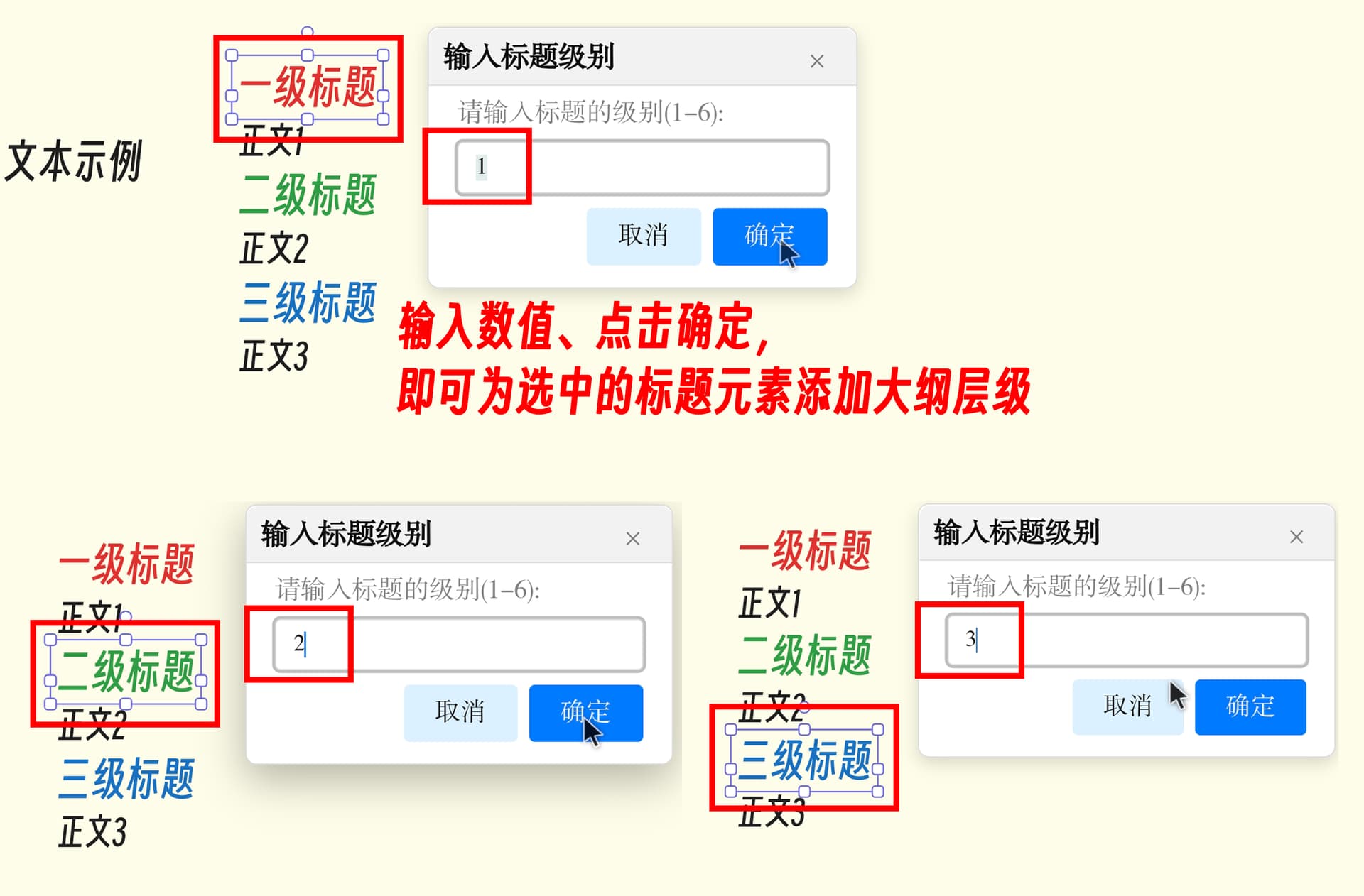 2、增加下拉选择器:可以在面板修改标题的大纲层级,如下图。