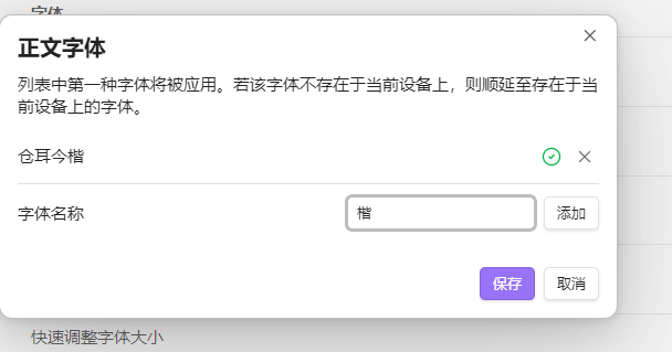 我之前装了仓耳今楷03 W04,可识别的字体名称是“仓耳今楷03”,得自己手动输入才能识别,这个全称感觉就挺怪的,有些判定要加 W04,有些又不用……
