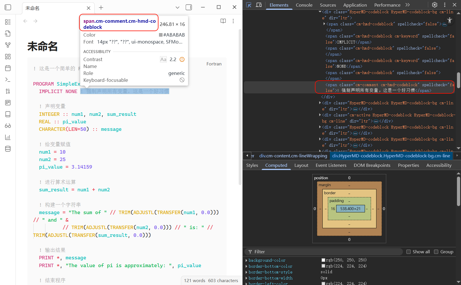 喔,谢谢你了。我还以为用CSS就可以了呢。请问如何修改如Fortran这样语言的格式呢?这样就可以显示afx的格式。这个显示是notepad++显示的效果,能否导入这个的xml进来呢?
