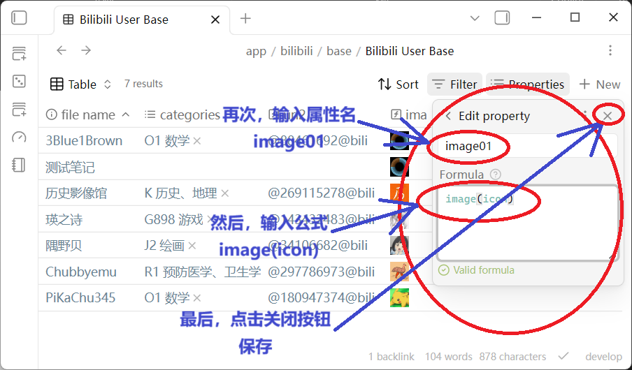 创建公式类型属性 image01,并将其公式属性 image01 的 Formula 设置为 image(icon)