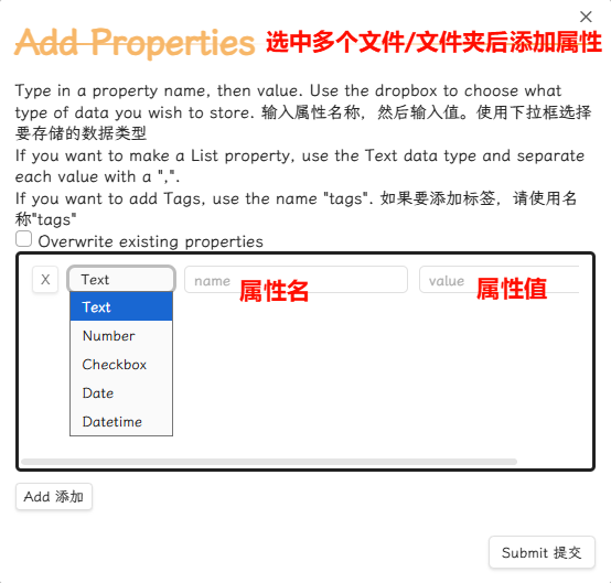 谢谢,我试了一下它,稍微减轻点工作量, 它只能批量给文件添加同样的属性名+属性值