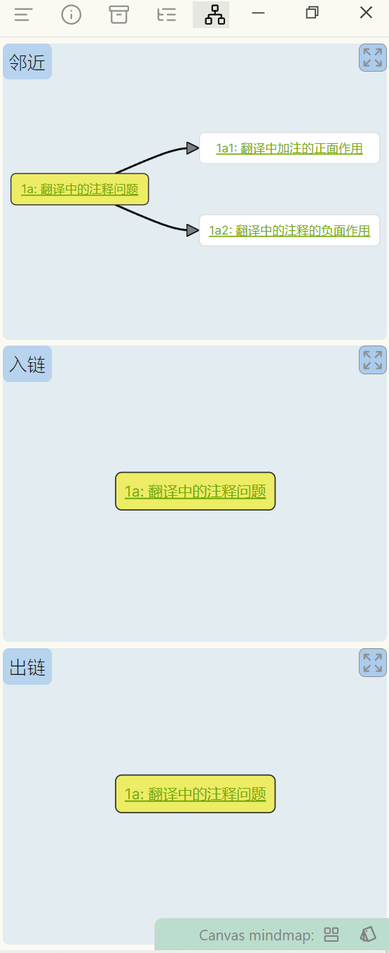 | 局部关系视图 | 执行特定命令后,在右侧边栏出现的邻近视图、入链视图和出链视图 |