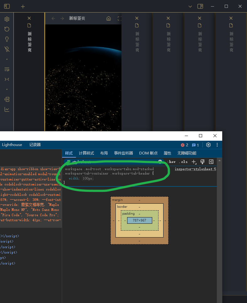 尝试了CSS调整,只有下列代码有点效果,但是又出新问题了。