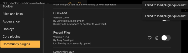 - 关闭/删除其他所有插件,单独启动quickadd——加载失败