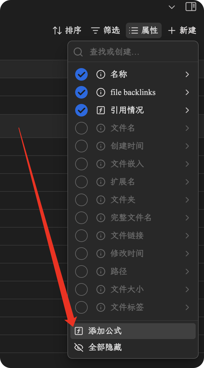 右上角属性→添加公式→输入公式