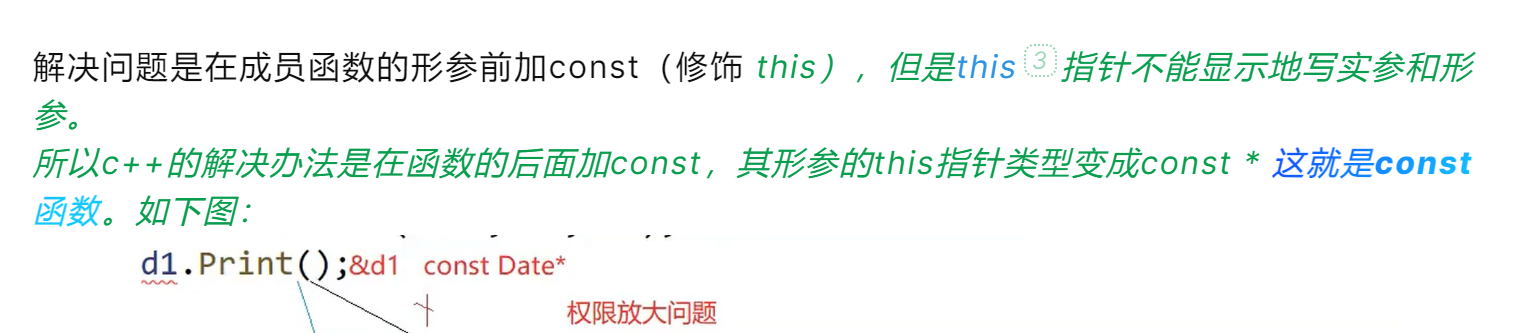 用非const对象调用,是权限的缩小。如下图,d2没有用const修饰,可以调用const成员函数Print()。
