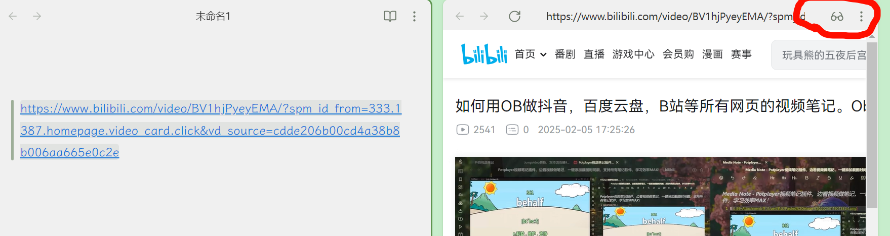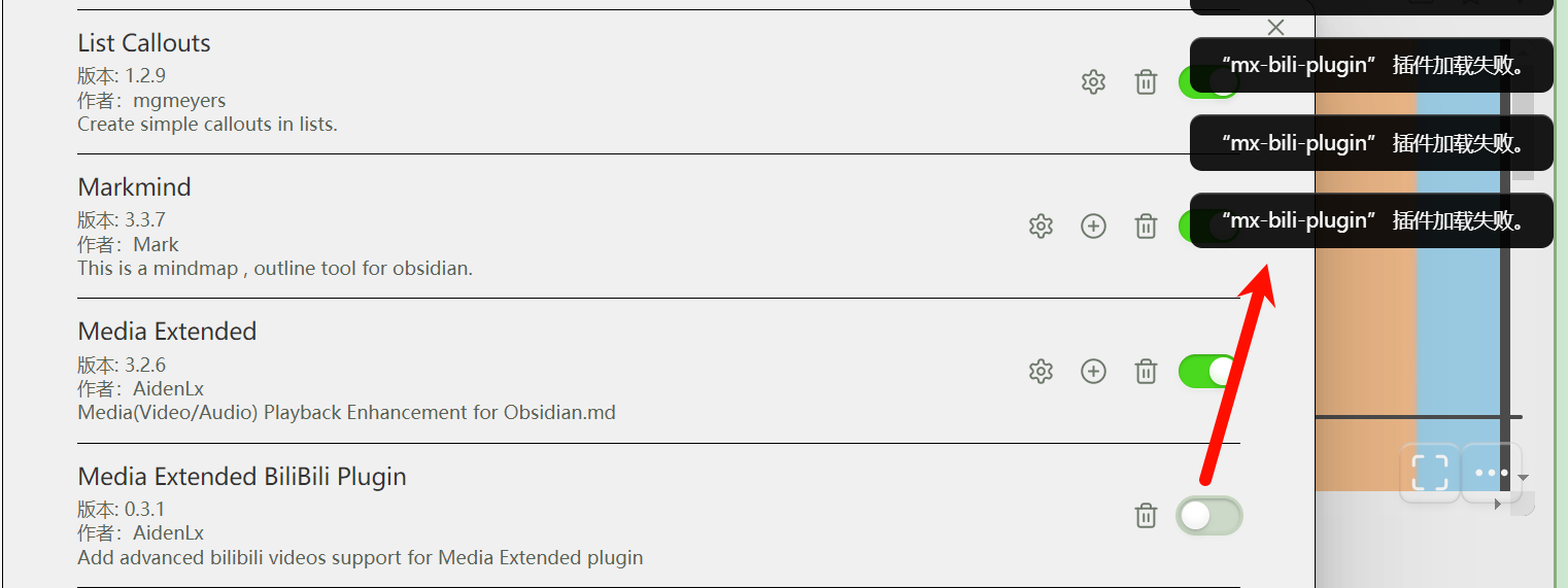 media extended插件安装4.0之前的版本,之后的版本暂不支持B站,然后再装一个 aidenlx/mx-bili-plugin插件就行了
