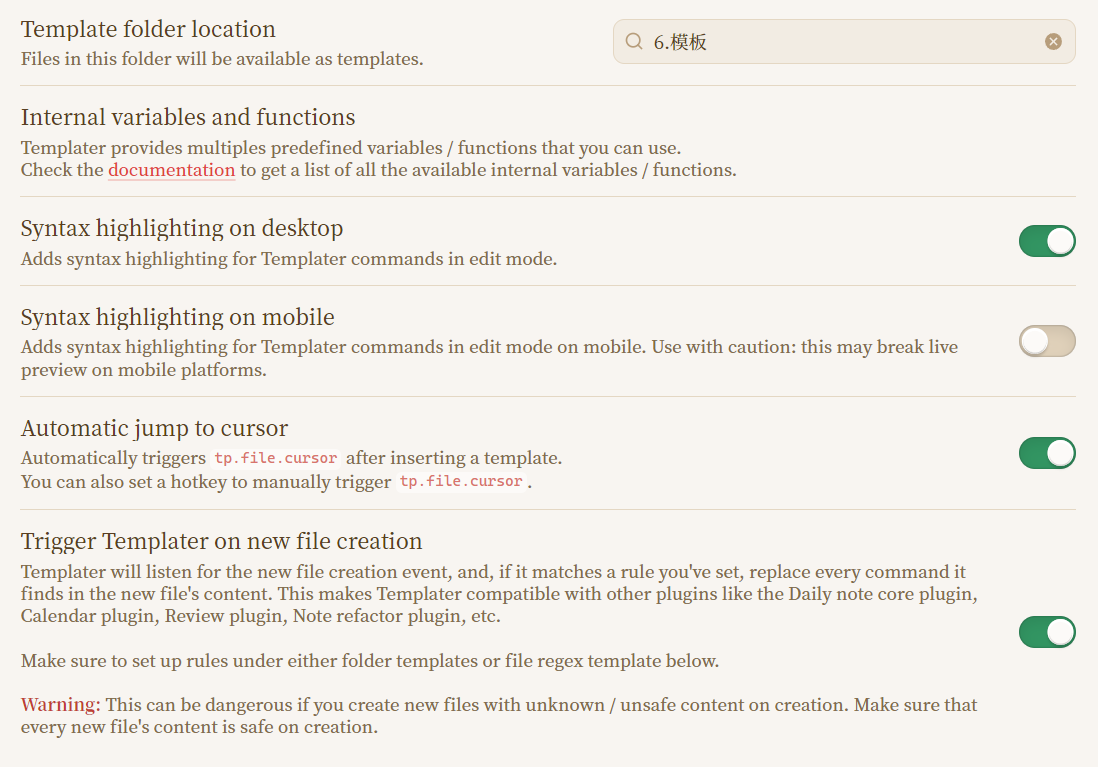 插件Templater配置