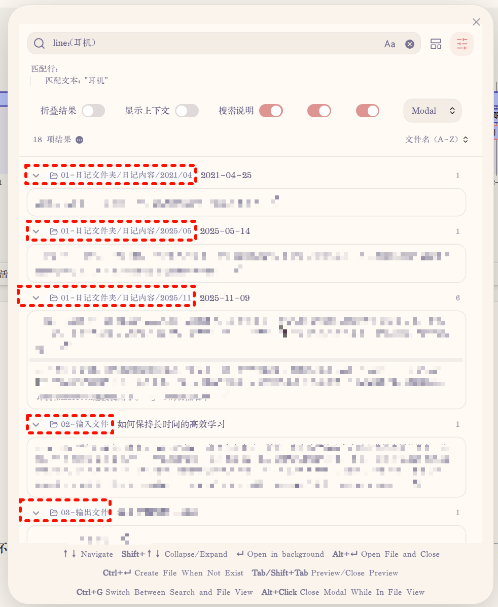如下图,我有100多个目录,有时候需要快速搜索并定位到相关目录,如果用ctrl+shift+F全局关键词搜索只会找到一大堆的笔记,目录是搜不到的。请问大家是怎么精确搜索目录的呢?