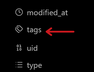 标签( tags )是预先定义好的属性名,所以你可以直接在属性区输入 tags 并开始添加标签属性。而且它有自己独属的图标: