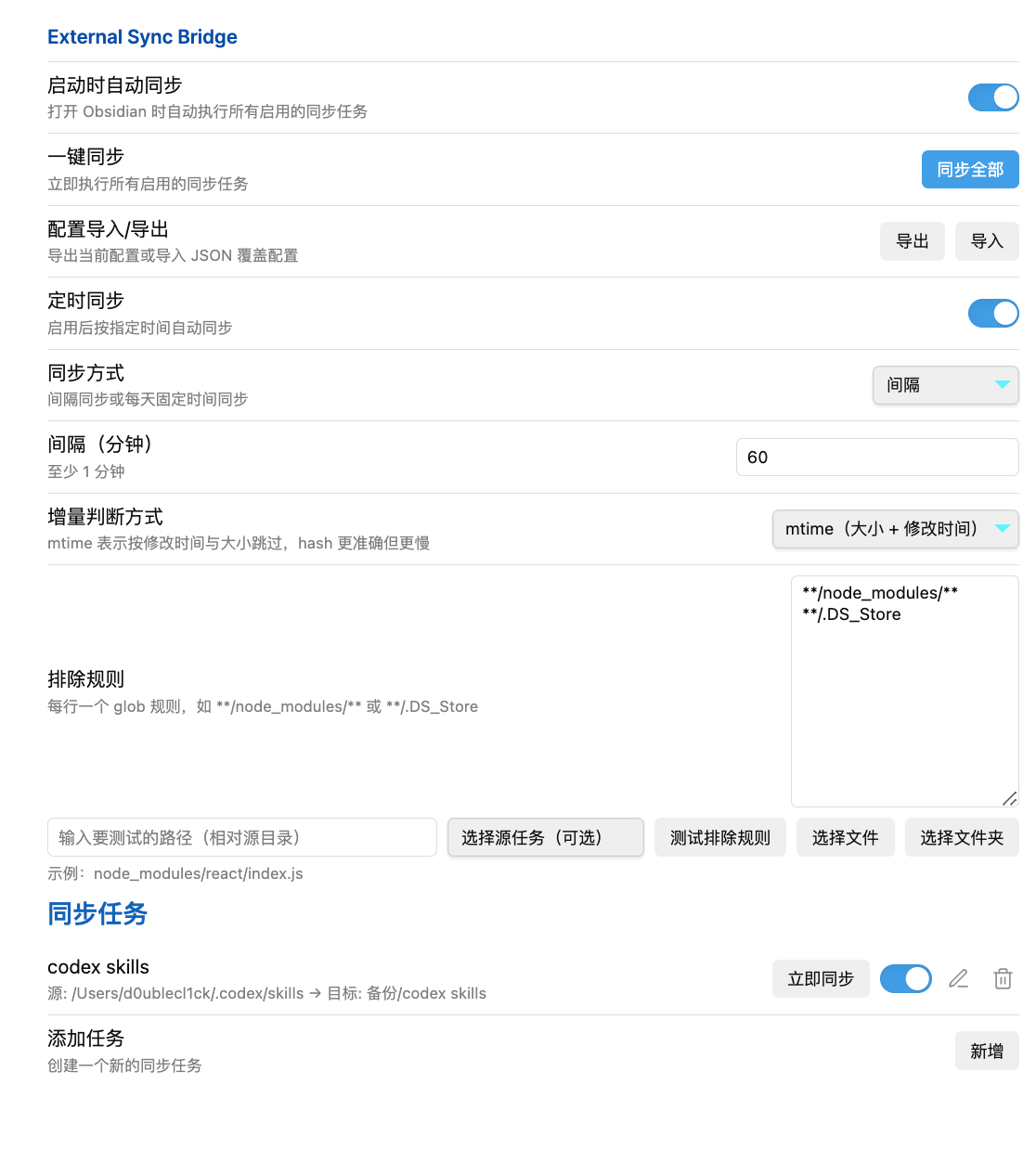 - 定时同步:间隔分钟 / 每天固定时间