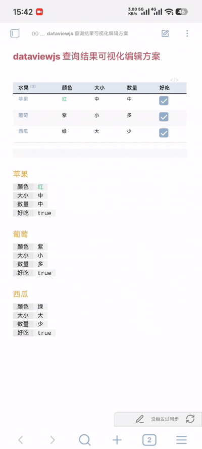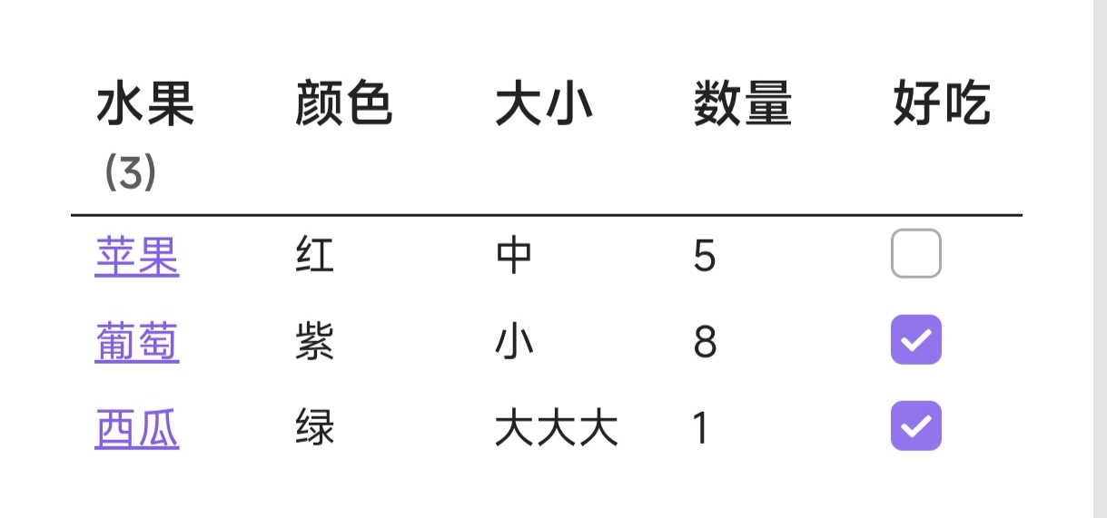 .setValue("葡萄", "好吃", ()=>false) // 设置单元格值