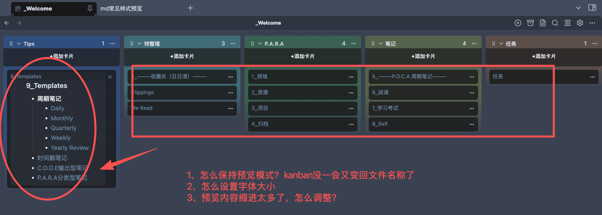 1、kanban 打开文件预览,没过一会又变回去文件名称了,怎么设置让它保持预览?