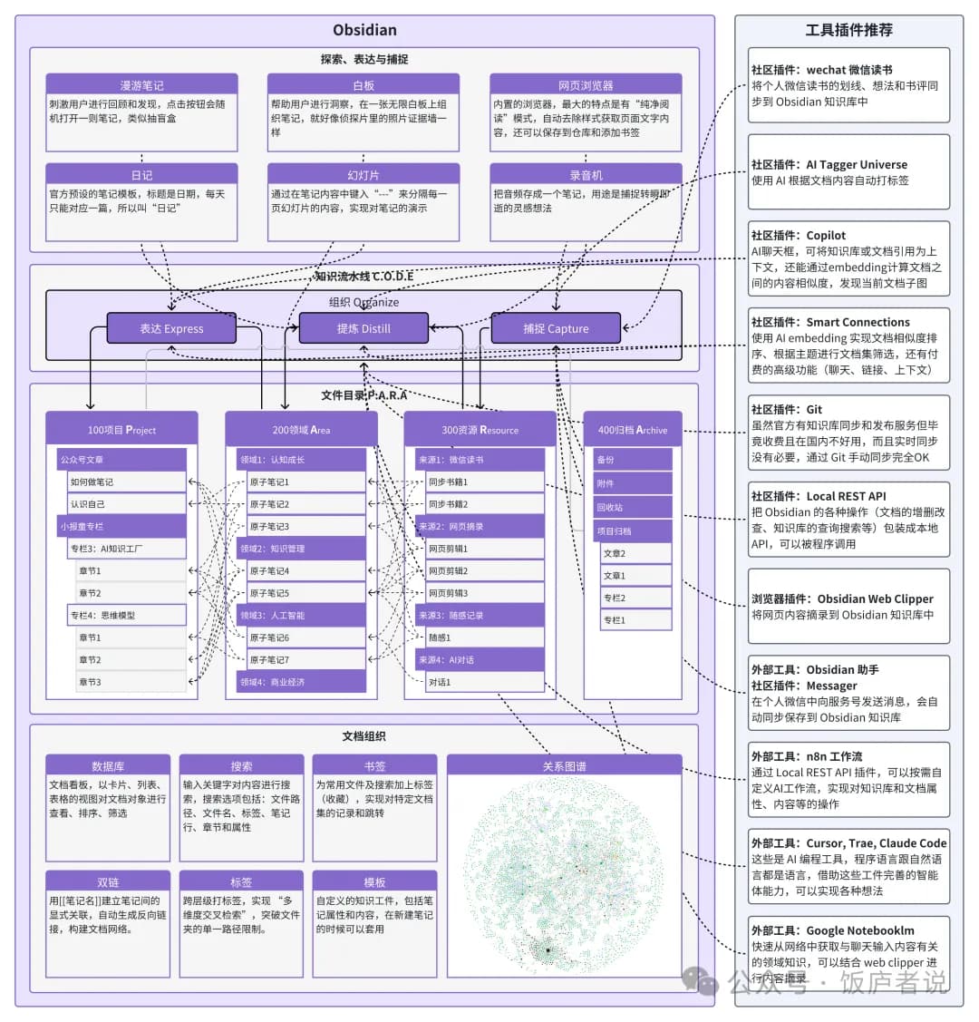 如果你是新手,你可能会被图的复杂度劝退;但如果你是 Obsidian 的老玩家,你或许能在这张图里看到自己的影子。