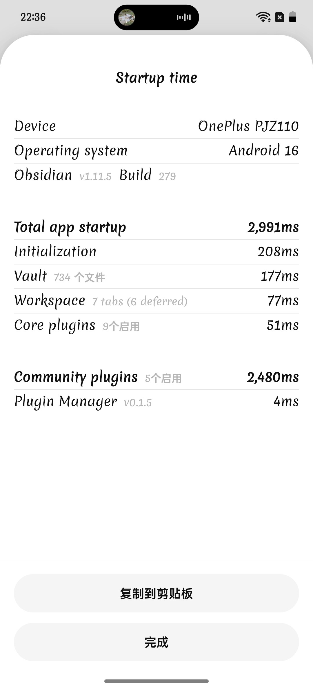 手机端,ob 插件延迟加载,只有 plugin manager 的时候,加载2s。如果禁用第三方插件,变成 vault 文件加载 2s。手机只安装了5个插件。