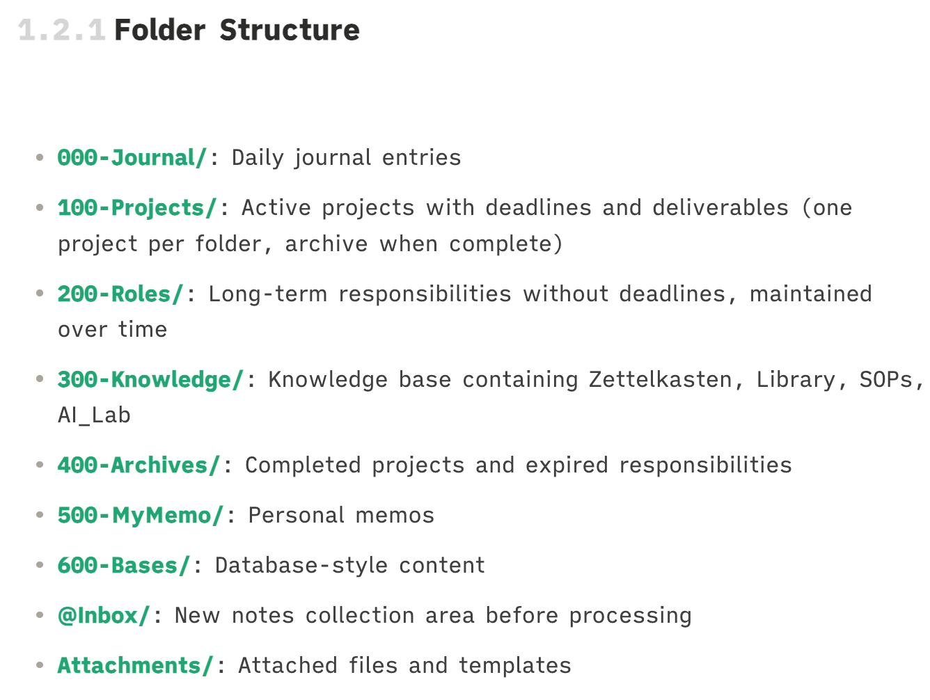 好了,下面来介绍我的PRKA,目前我也在实践Obsidian+Claude code,下面展示一下CLAUDE.md帮我整理的Ob库文件夹结构:
