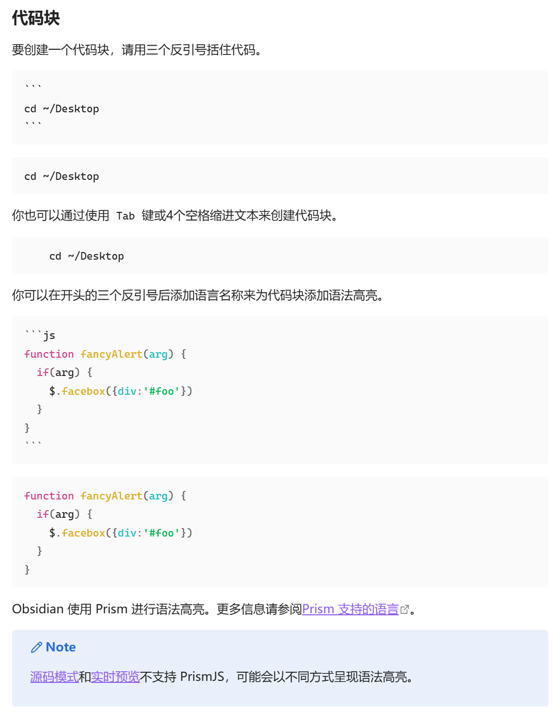 如果是常规的高亮,Obsidian自带: 注意把css、js之类的写上去