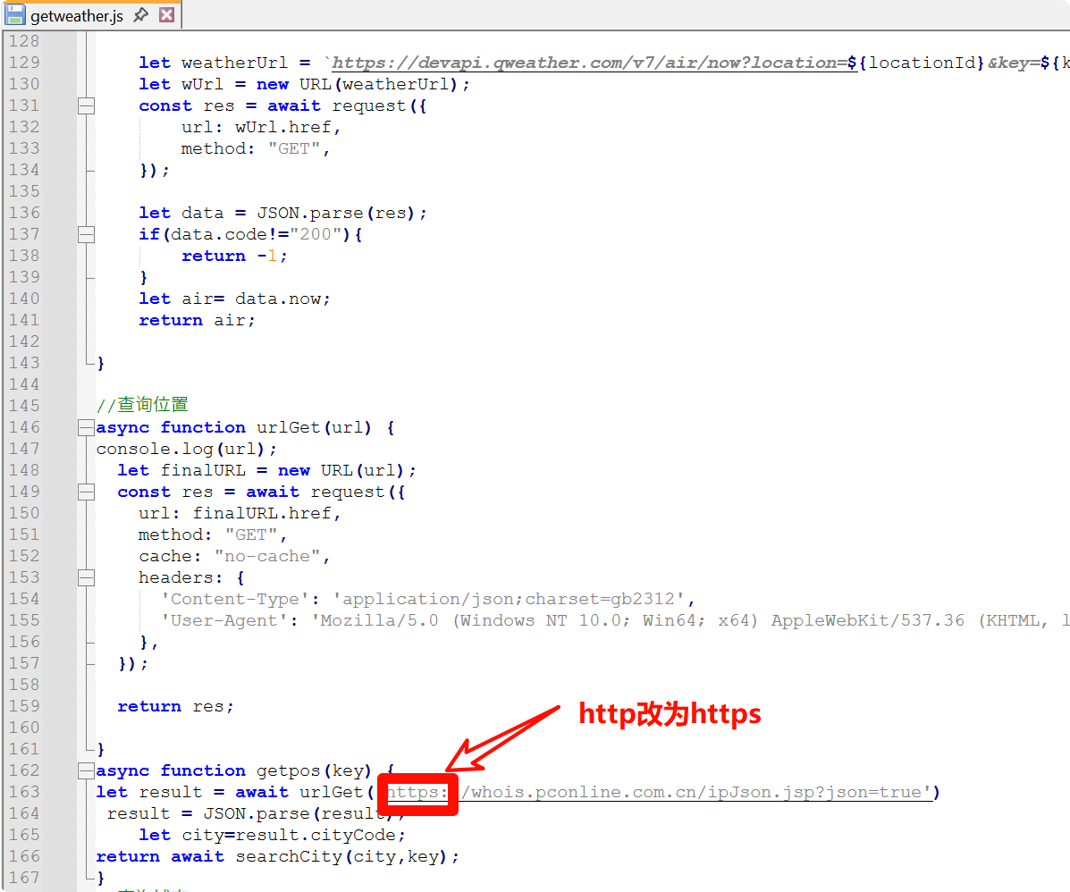 找到 getweather.js文件,改成https://whois.pconline.com.cn/ipJson.jsp?json=true。