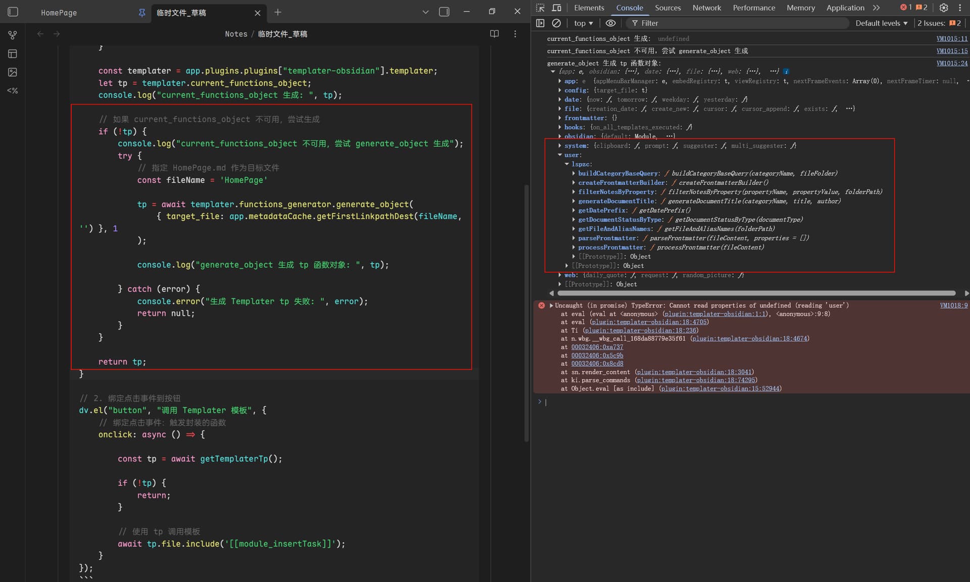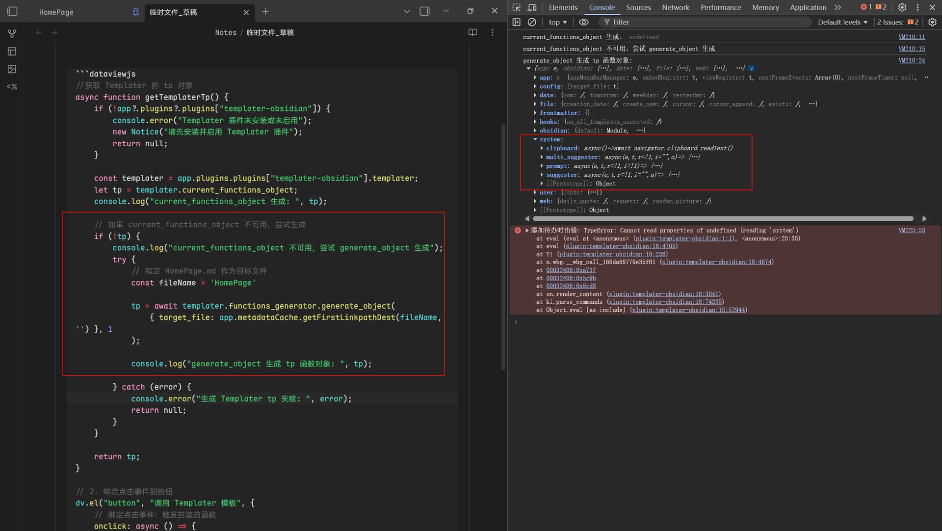 app.plugins.plugins['templater-obsidian'].templater.current_functions_object = tp;