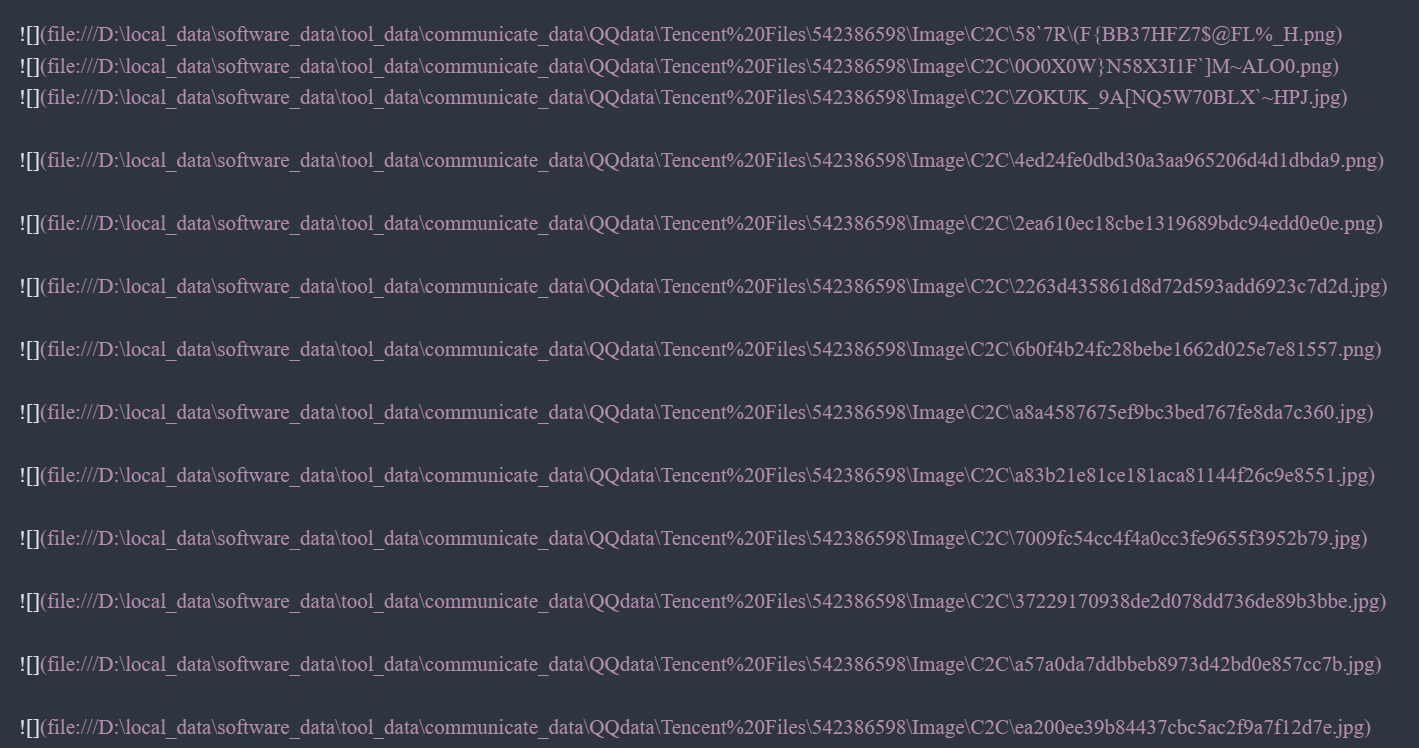 - 复制粘贴是本地文件链接的格式,如!(file:///D:\local_data\software_data\tool_data\communicate_data\QQdata\Tencent%20Files\542386598\Image\Group2\Q)\TN\Q)TNF]S%MRO@AI1(F[I]OYC.gif),聊天记录一请客全没了。