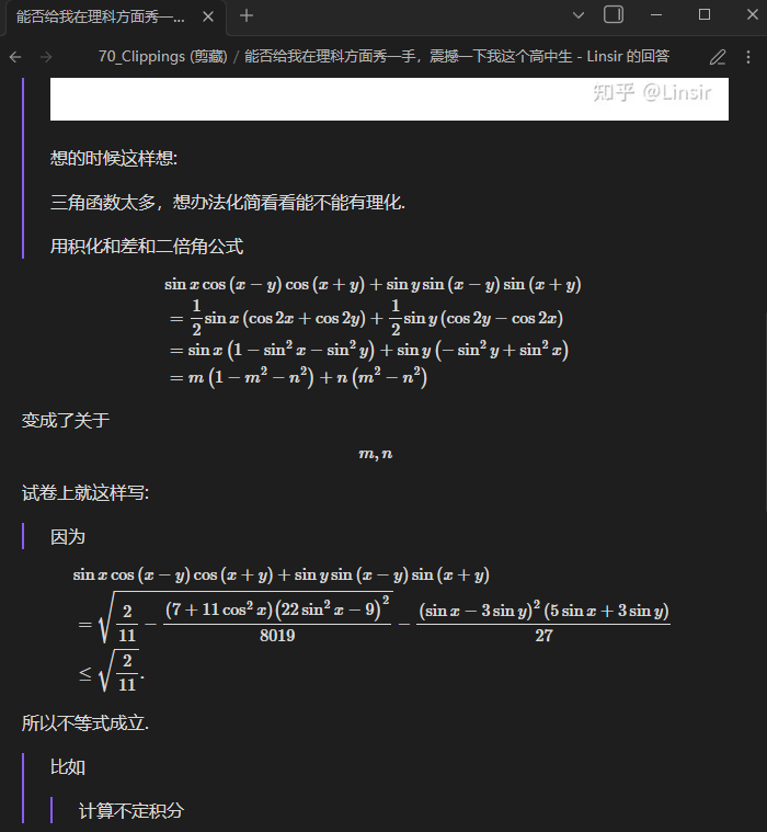 - 包含大量公式的回答请先慢慢滚动到最底部,等回答中的公式全部都加载出来(而不是latex原格式)后再使用clipper剪藏。